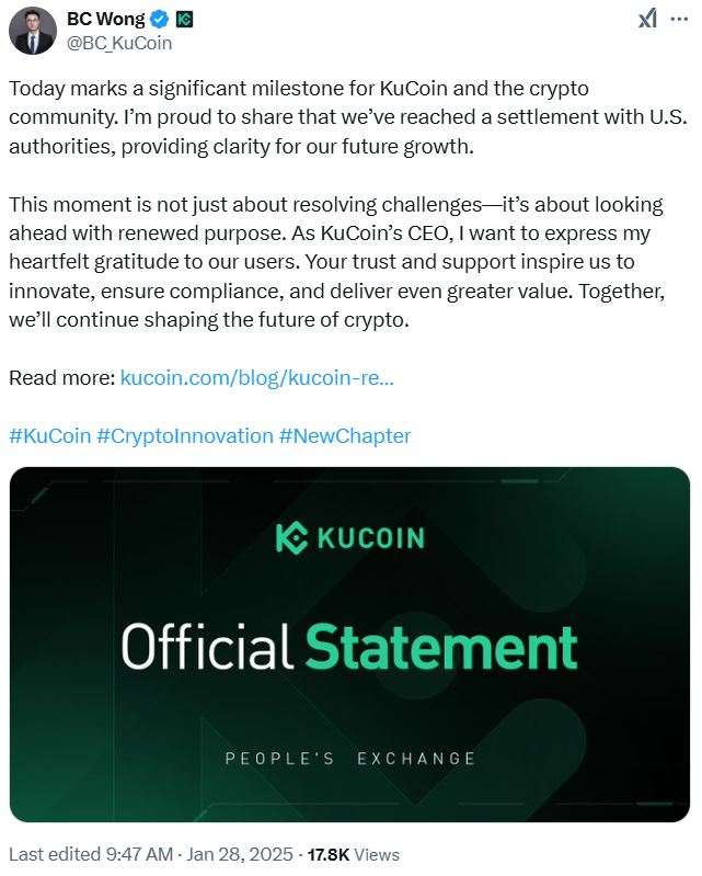 Кукоин сказал в сообщении в блоге от 28 января, что его операции на других рынках остаются незатронутыми, и были достигнуты значительные шаги по укреплению структуры соответствия и безопасности платформы.