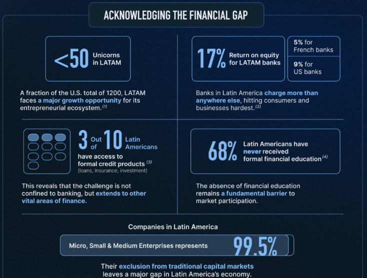 Отсутствие доступа к банковским услугам также привело к системной неэффективности в регионе, включая технологические барьеры и высокие стартовые затраты, которые замедляют приток инвестиций на латиноамериканские рынки капитала.
