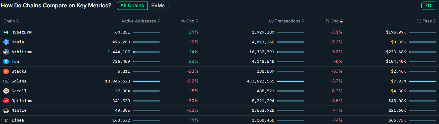 Глядя на одного из основных конкурентов Avalanche, Solana Blockchain наблюдал снижение еженедельных транзакций на 6,7%, примечательные на 433 миллиона транзакций по 18,9 млн. Активных адресов, показывают данные Nansen.
