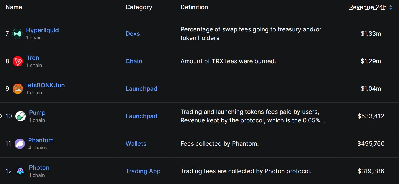 Pump.fun по-прежнему доминирует в 30-дневной диаграмме доходов