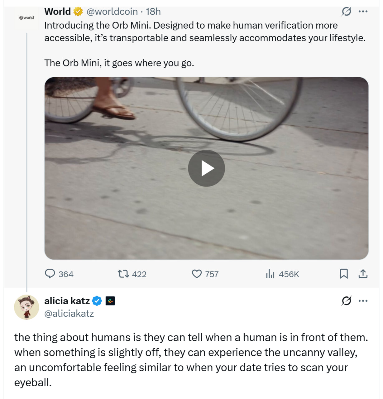 Последнее оборудование WorldCoin, Orb Mini, направленное на то, чтобы обеспечить портативную человеческую проверку, было встречено насмешливым в Twitter в криптовалюте.