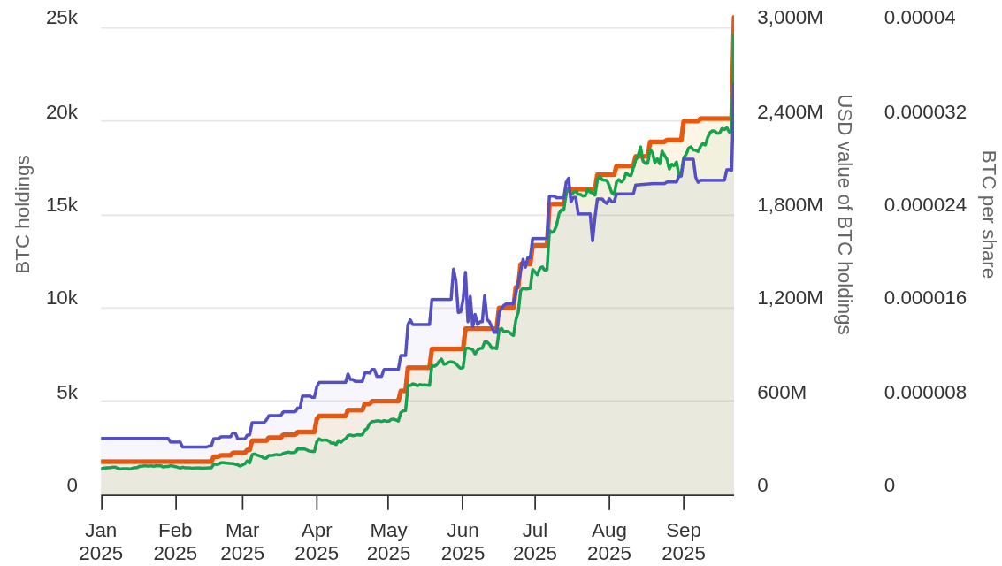 В понедельник компания заявила, что приобрела 5419 биткоин (BTC) по средней цене 17 281 012 японских иен за биткоин или почти 117 000 долларов. Согласно этой последней покупке 633 миллионов долларов, активы компании достигли 25 555 BTC, что сделало ее пятой по величине корпоративной биткоин-казначейство, согласно Bitcointreasuries.net.
