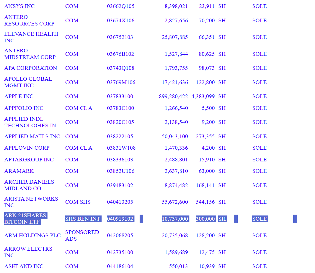 К концу второго квартала в штате Мичиганская пенсионная система владела 300 000 акций ARKB на сумму 10,737 млн. Долл. США, согласно заявлениям регулирования в Комиссии по ценным бумагам и биржам США (SEC). Это знаменует собой заметное увеличение по сравнению с 110 000 акций, которые он провел в предыдущем году.