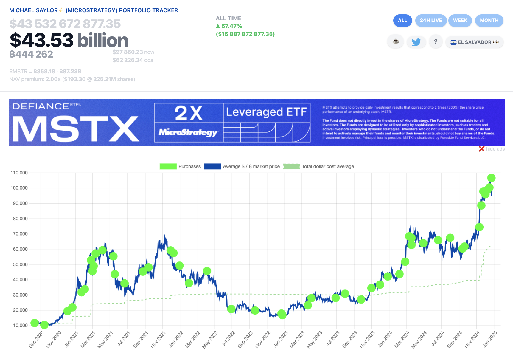 Компания регулярно приобретает BTC с 2020 года, но с момента объявления плана активизировала покупки. Только за декабрь он купил 42 162 биткоина на сумму более 4 миллиардов долларов в текущих ценах.
