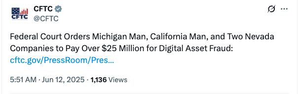CFTC предупредил обманывающих инвесторов, что они могут не вернуть свои деньги, «потому что правонарушители могут не иметь достаточных средств или активов».