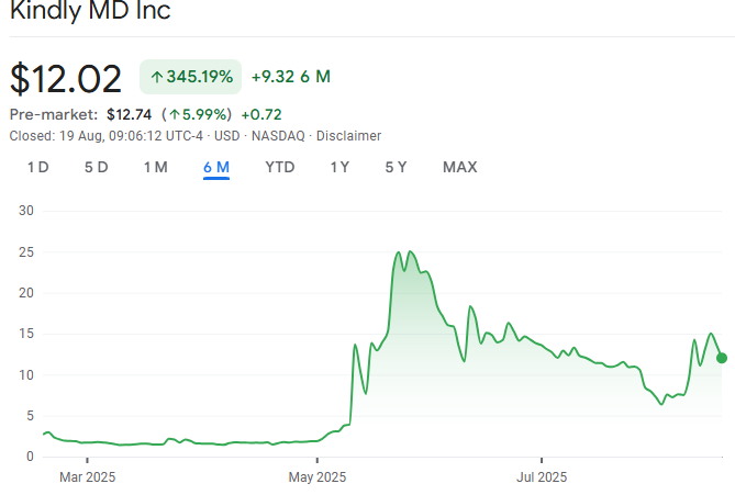 Согласно данным Google Finance Data, акции kindlyMD упали более чем на 12% с тех пор, как слияние было объявлено 12 мая 12 мая.