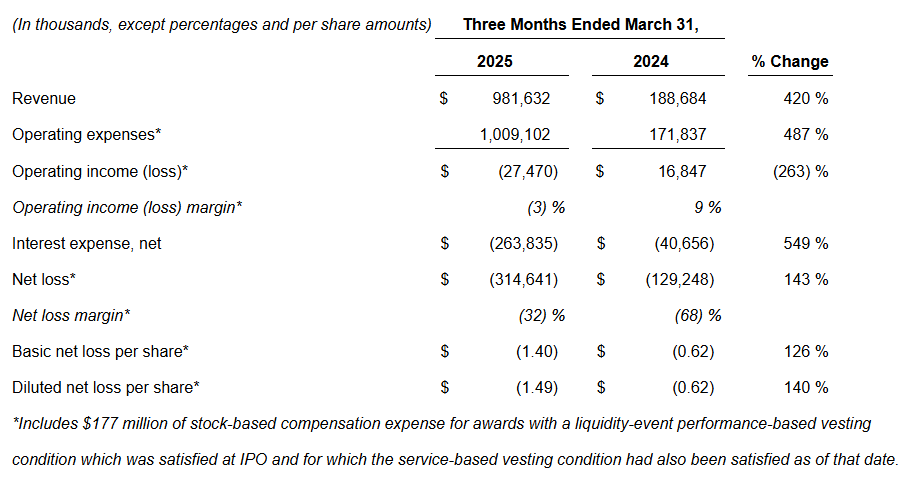 Отчеты NVIDIA в первом квартале затмили финансовый отчет CoreWeave в первом квартале, который показал рост выручки на 420%, а также 487% эксплуатационных расходов. Чистые убытки компании расширились на 143% по сравнению с годом ранее. Его акции снизились вскоре после того, как финансовые показатели были выпущены 14 мая.