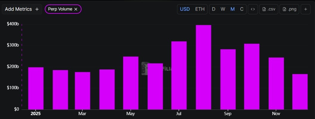 Децентрализованные биржи бессрочных контрактов завершают 2025 год, а совокупный объем торгов достигнет примерно $12,09 трлн по сравнению с примерно $4,1 трлн в начале года.