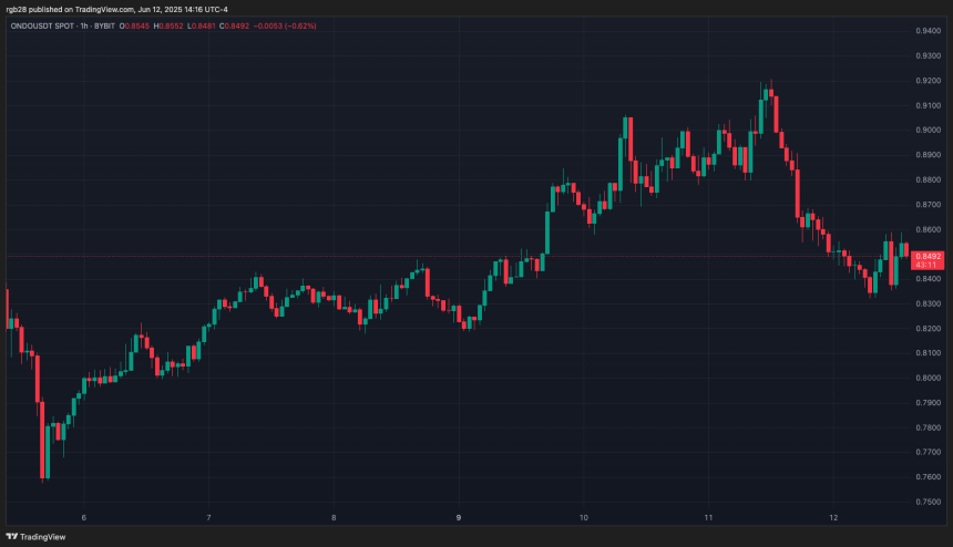 На момент написания, Ondo торгуется на уровне 0,84 долл. США, что на 5,2% снижение в ежедневные сроки.