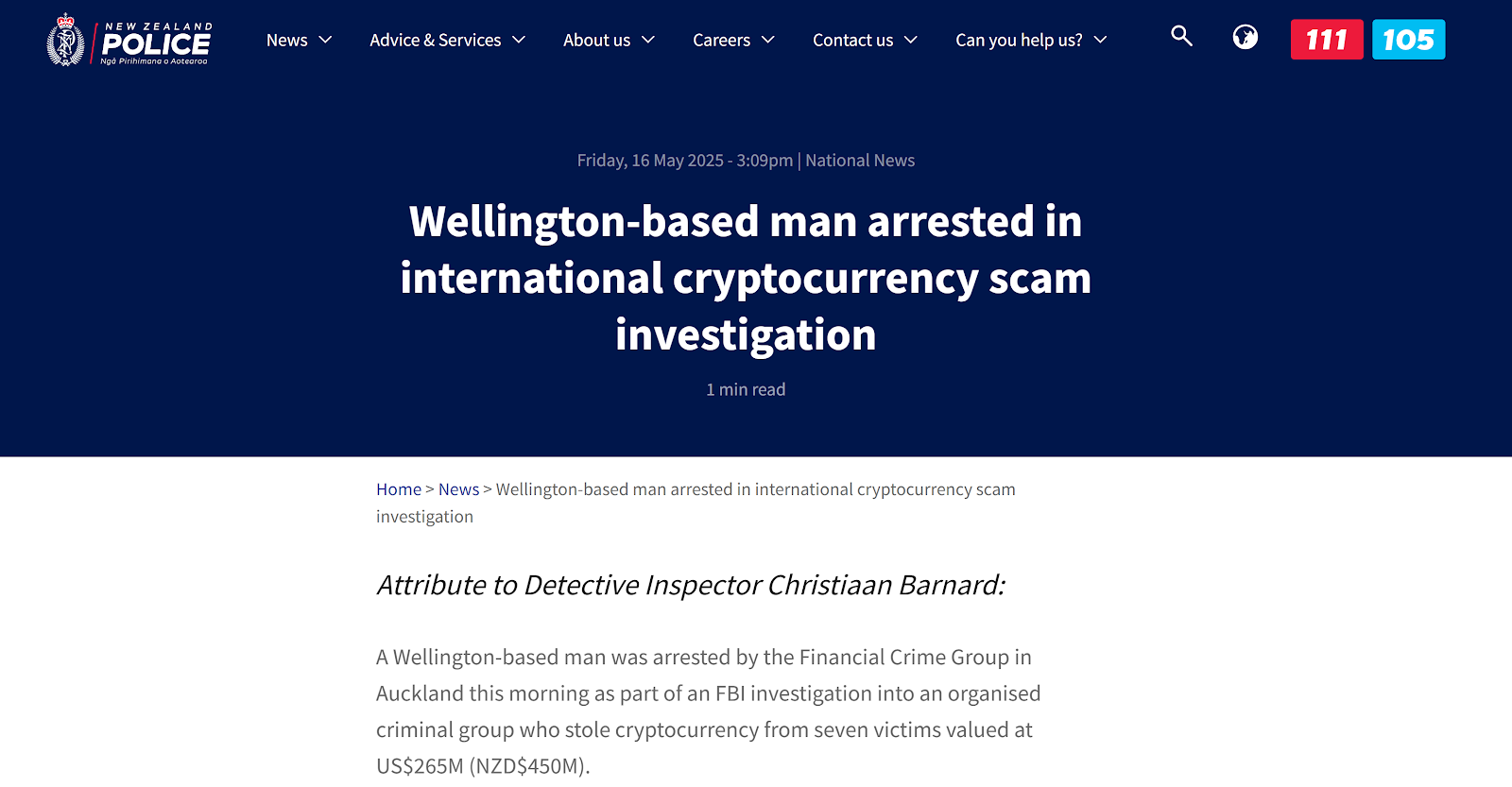 Криптовалютные мошенничества являются растущей проблемой для розничных инвесторов. В мае расследование, возглавляемое ФБР, привело к аресту мужчины из Новой Зеландии, который якобы украл цифровые активы на сумму 265 миллионов долларов.