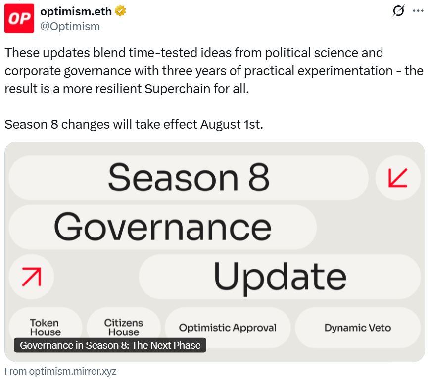 Команда по оптимизму заявила, что создала четыре группы заинтересованных сторон: токеновщики, конечные пользователи, приложения и цепочки, чтобы гарантировать, что все могут голосовать за предложения по управлению.