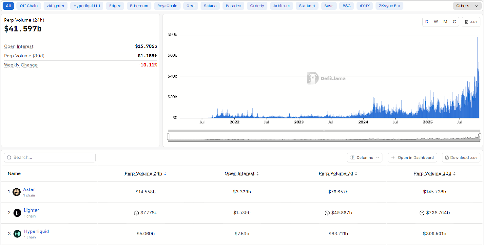 Тем не менее, по данным блокчейн-платформы данных DefiLlama, 30-дневный объем торгов Hyperliquid в размере 309 миллиардов долларов по-прежнему вдвое превышает объем торгов Aster в 145 миллиардов долларов за последний месяц.