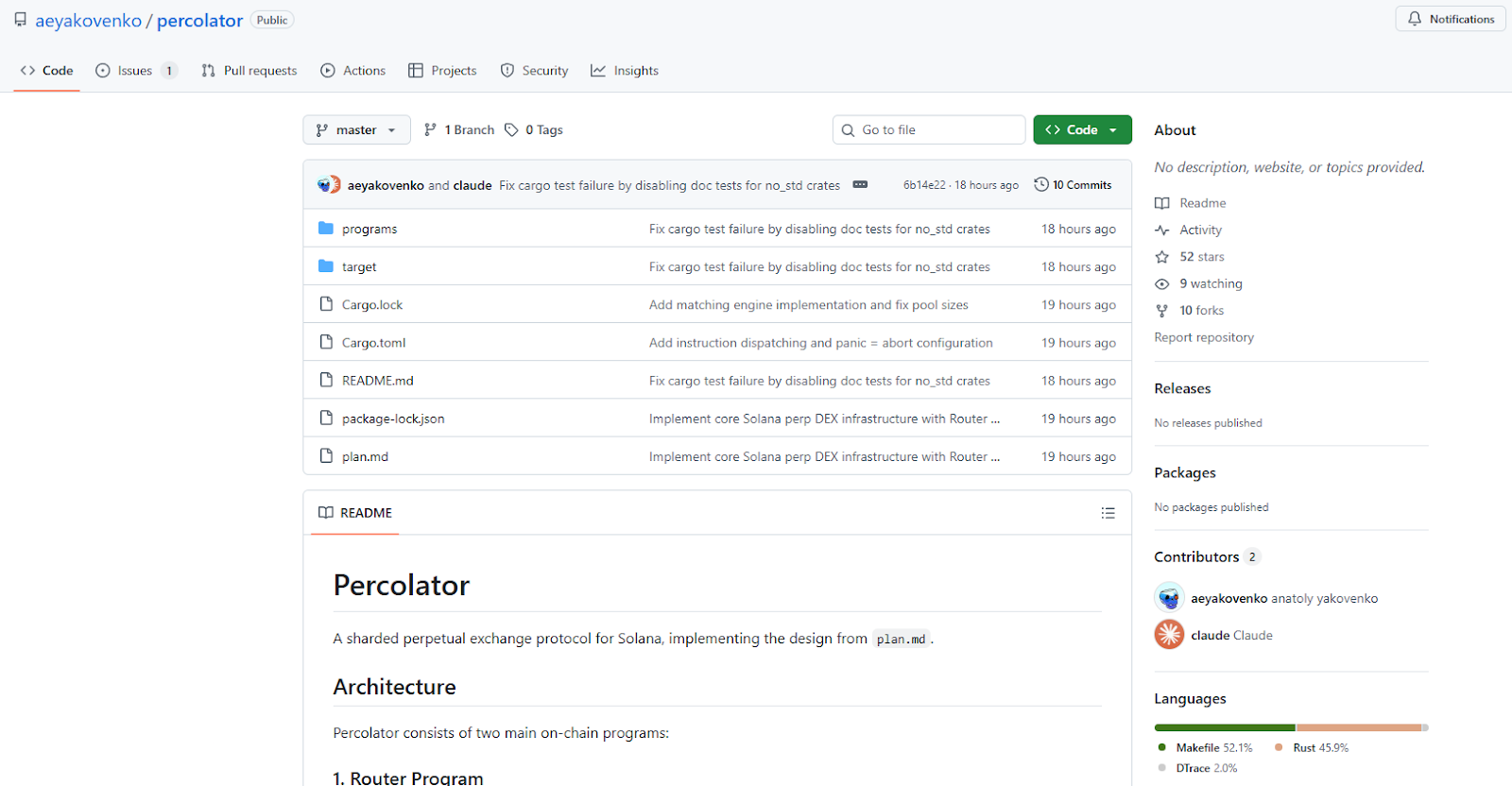 Percolator будет состоять из двух основных ончейн-программ, включая программу Router, которая управляет обеспечением, маржой портфеля и маршрутизацией между пластинами, и программу Slab, которая представляет собой бессрочный механизм, управляемый поставщиками ликвидности, с «полностью автономным» сопоставлением и расчетами, согласно предложению Яковенко в понедельник на GitHub.