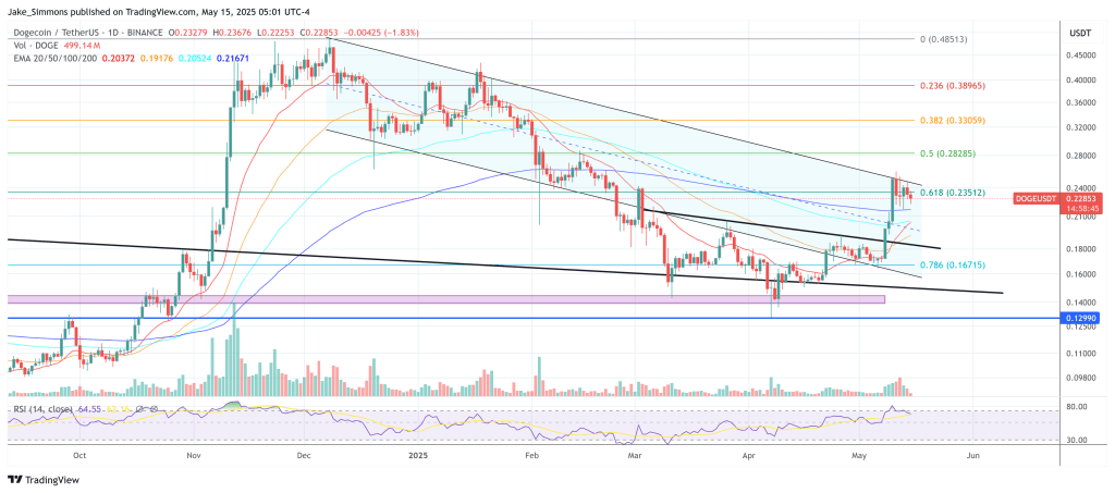Во время печати Dogecoin перешел в руки около 0,228 долл. США, парясь вблизи линии прорыва канала тренда нисходящего, который возник в декабре прошлого года и с тех пор доминировал в ценовых действиях. Примечательно, что средняя линия этого канала также расположена чуть ниже 0,20 долл., Укрепляя важность этого уровня для продолжения бычьего импульса.
