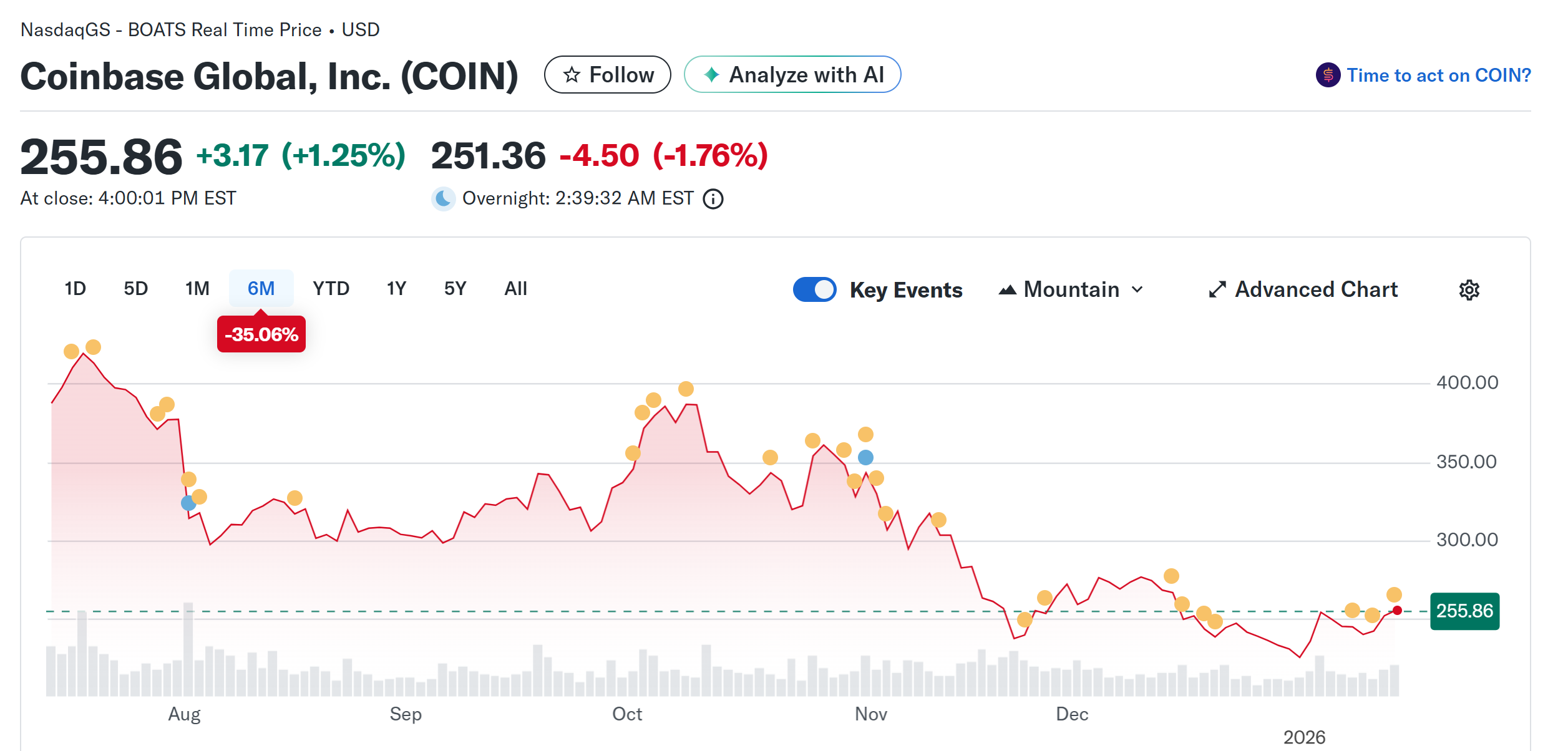 По данным Yahoo Finance, Coinbase начала октябрьские торги на уровне $346, но закончила год на уровне $226, что означает падение почти на 35%. По данным CoinMarketCap, за тот же период Биткоин потерял 22%, а Эфир упал на 28%.