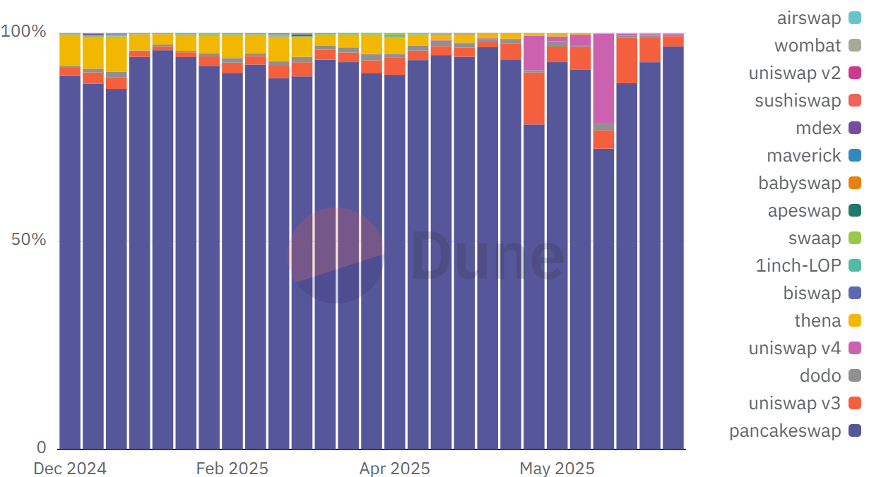 Доля рынка DEX в цепочке BNB Источник: Dune Analytics