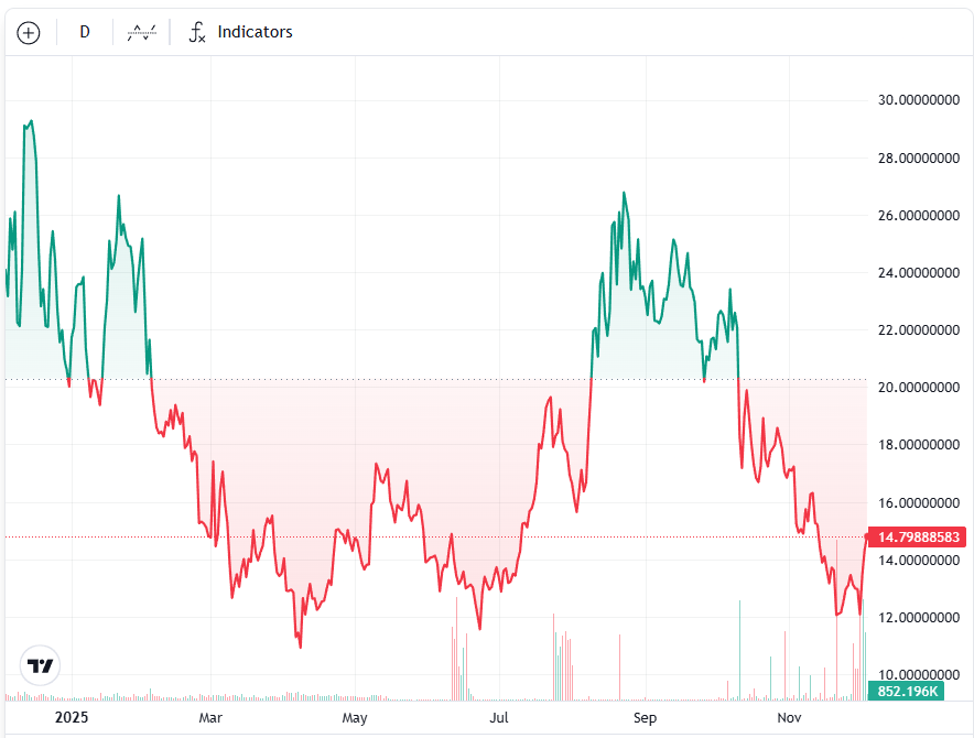 Хотя цена токена LINK выросла на 9,8% за последнюю неделю, дебют ETF не смог обратить вспять падение токена на 39% за последний год, показывают данные Cointelegraph.
