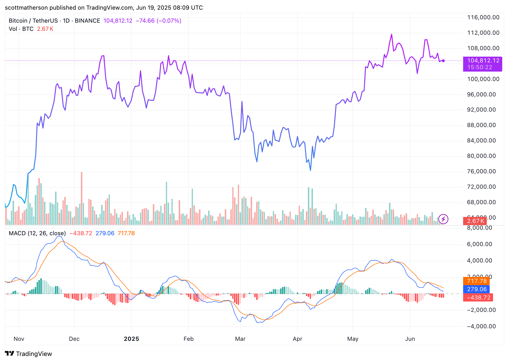 До тех пор анализ ReadCrypto показывает, что все глаза находятся на зоне от 104 000 до 106 000 долларов. Площадь от 99 705 до 108 316 долл. США в настоящее время определяет диапазон консолидации с высокой стороной. Подтвержденный ход за пределами этого диапазона, в основном запускаемый во время окна 21-13 июня, может диктовать следующий крупный ход Биткоина.