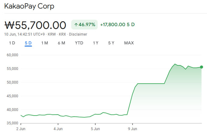 За прошедшую неделю выросла акция Kakaopay. Источник: Google Finance