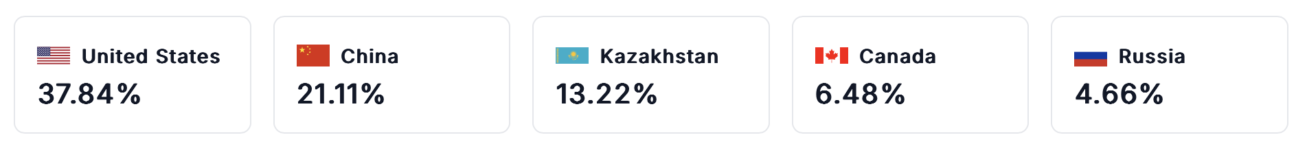 После запрета Китая на майнинг Биткоин в 2021 году большая часть хеш-мощности отрасли мигрировала в США, на долю которых в настоящее время приходится около 37% глобального хешрейта Биткоин, что делает их крупнейшим центром майнинга в мире. Шесть из десяти крупнейших публичных горнодобывающих компаний мира базируются в США.