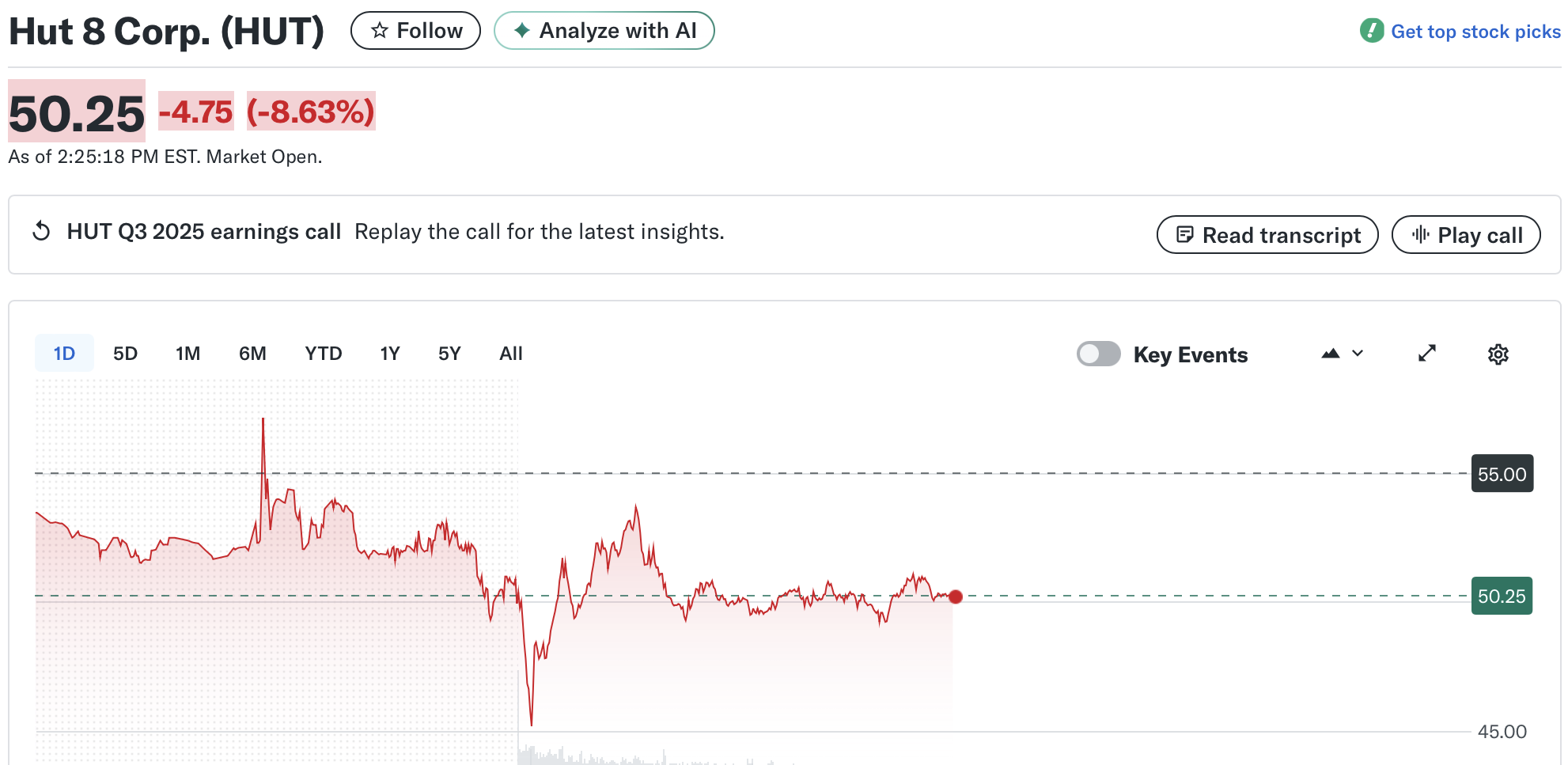 Результаты, похоже, не оправдали ожиданий инвесторов: во вторник обе акции торговались с понижением. На момент написания этой статьи акции Hut 8 упали примерно на 9%, а акции MARA упали на 5%.