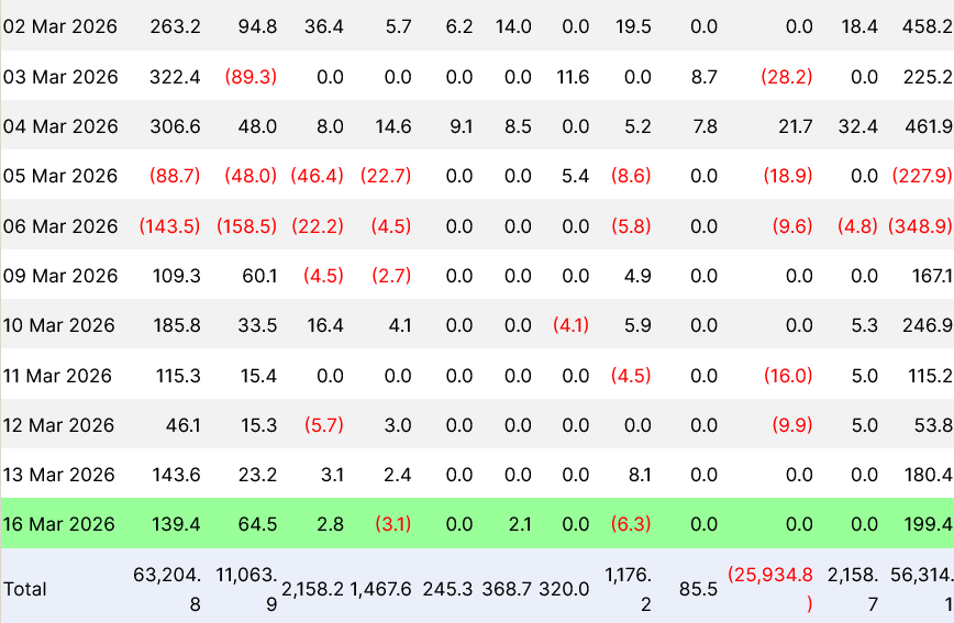 В результате общий чистый приток с 9 марта составил $962,8 млн, что совпало с ростом биткоина (BTC) на 12,5% с $65 960 до $74 250 за этот период.