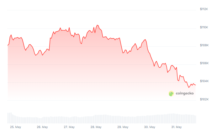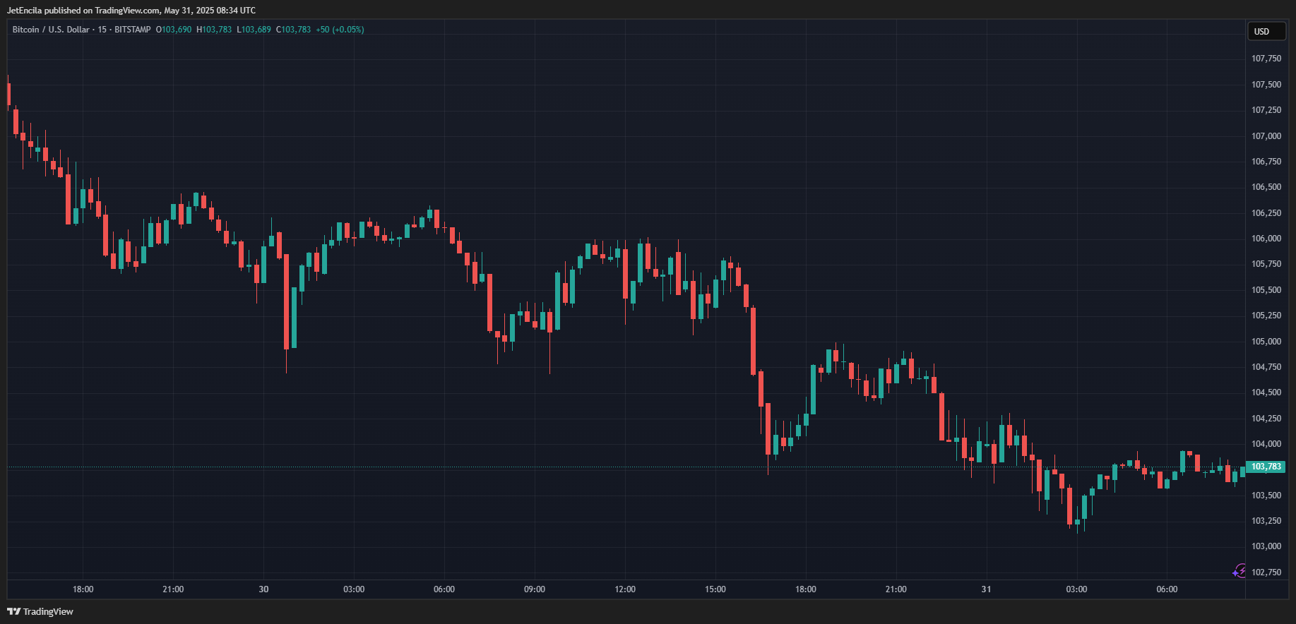 BTC в настоящее время торгуется на уровне 103 783 долл. США. Диаграмма: Tradingview