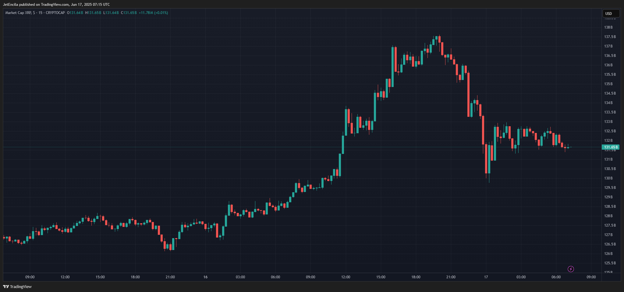 Рыночная капитализация XRP в настоящее время составляет 131,7 миллиарда долларов. Диаграмма: Tradingview
