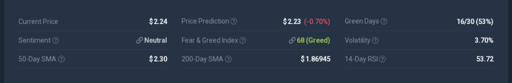 Ожидается, что XRP будет немного окунуться – примерно на 0,70% – с прогнозами, размещая его стоимость в 2,23 долл. США к 17 июля 2025 года. Текущие индикаторы рисуют нейтральное настроение на рынке, при этом индекс страха и жадности сильно прилегает к нейтральному на нейтральности со счетом 57.