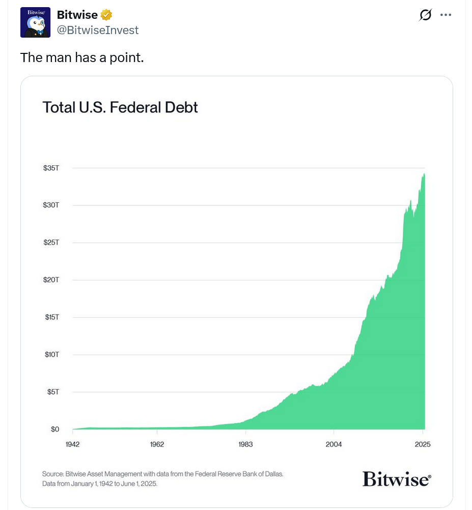 Американский миллиардер и управляющий хедж-фондом Рэй Далио рекомендовал 15% распределение портфеля в биткоин или золото для оптимизации для «наилучшего соотношения возврата к риску» в свете проблемной долговой проблемы Америки и девальвации валюты.