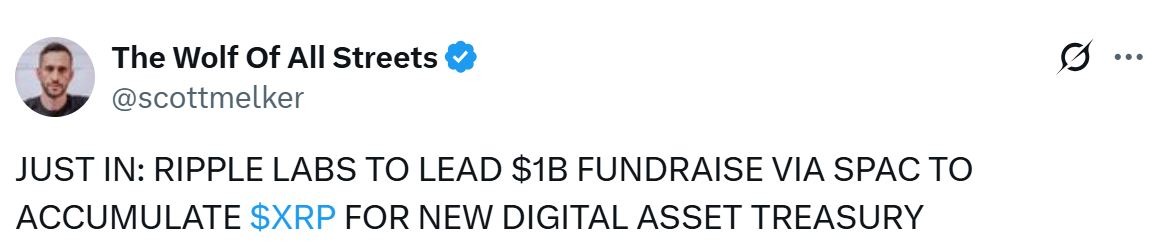 По сообщениям Bloomberg, Ripple Labs находится на пороге начала сбора средств для покупки своего токена XRP на сумму 1 миллиард долларов для хранения в казначействе цифровых активов.