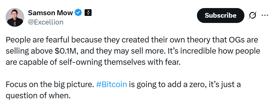 Однако во вторник Моу заявил, что опасения по поводу продажи биткоин-OG преувеличены и что трейдерам следует сосредоточиться на следующем бычьем росте.