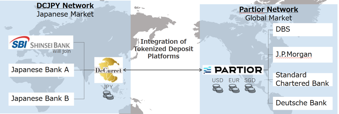 Decurret в настоящее время управляет платформой DCJPY, которая позволяет банкам в Японии выпускать токенизированные депозиты, преподаваемые иенами. SBI Shinsei планирует выйти за рамки японской иены, стремясь выпустить токенизированные депозиты в других основных валютах для удовлетворения растущего спроса на более быстрые международные платежи.