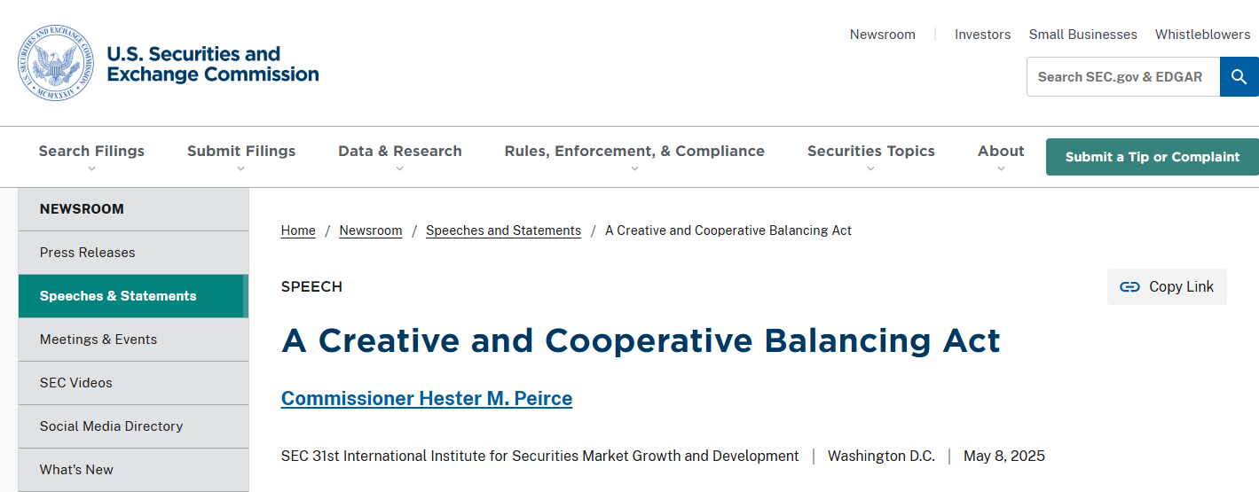 Комиссия по ценным бумагам и биржам США (SEC) рассматривает изменения правила, чтобы позволить компаниям более свободно выпускать токенизированные ценные бумаги, сказал комиссар SEC Хестер Пирс в речи, опубликованном 8 мая.