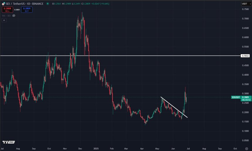 SEI лидирует на рынке с 43% еженедельным всплеском – в ближайшее время $0,5?