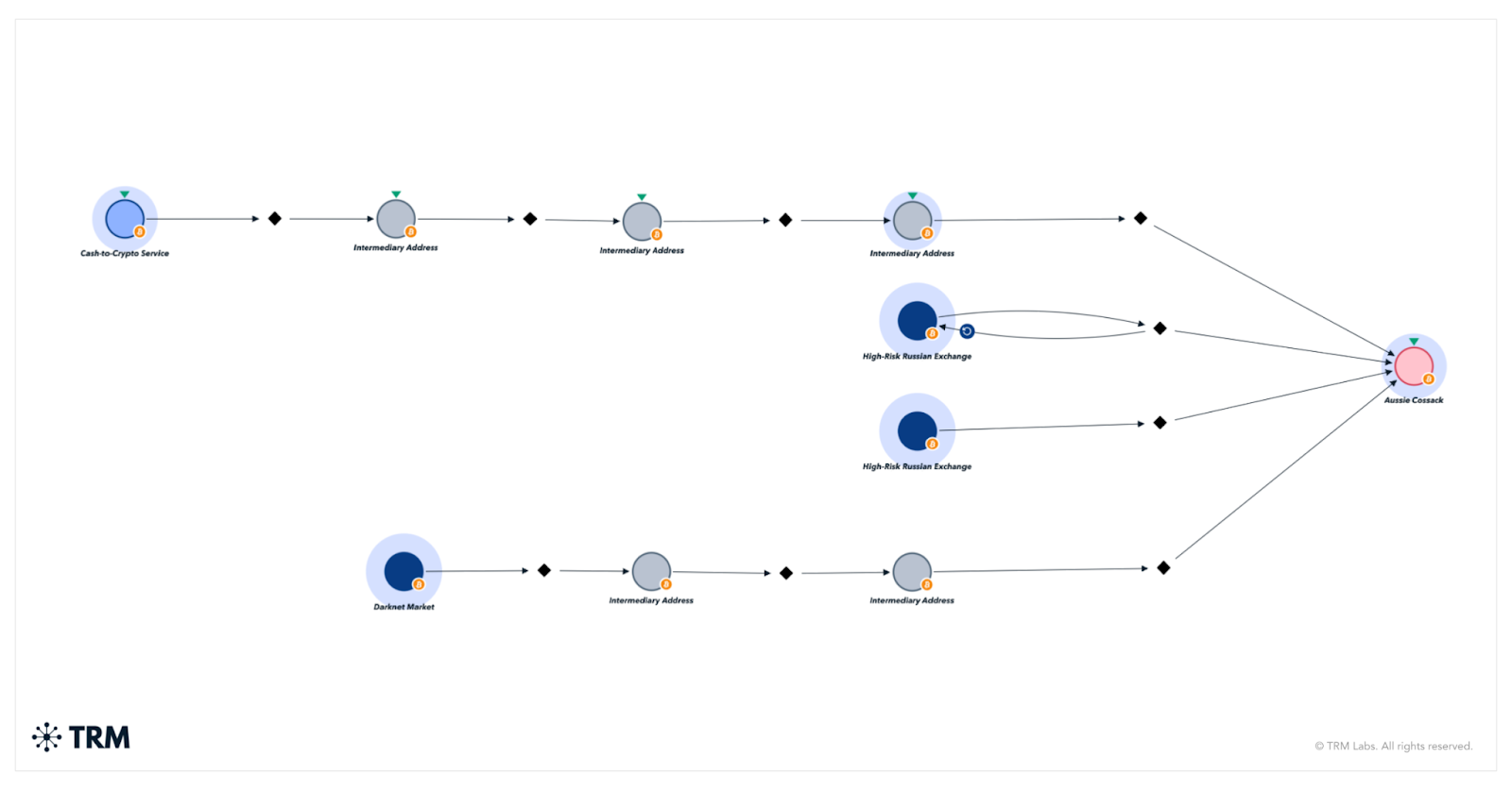 TRM Labs сообщает, что Boikov занимался российскими биржами с высоким уровнем риска, которые не обеспечивают проверку Know-Your-Client (KYC) и получали средства через услуги денежных средств на криптовалюту и рынки Darknet.