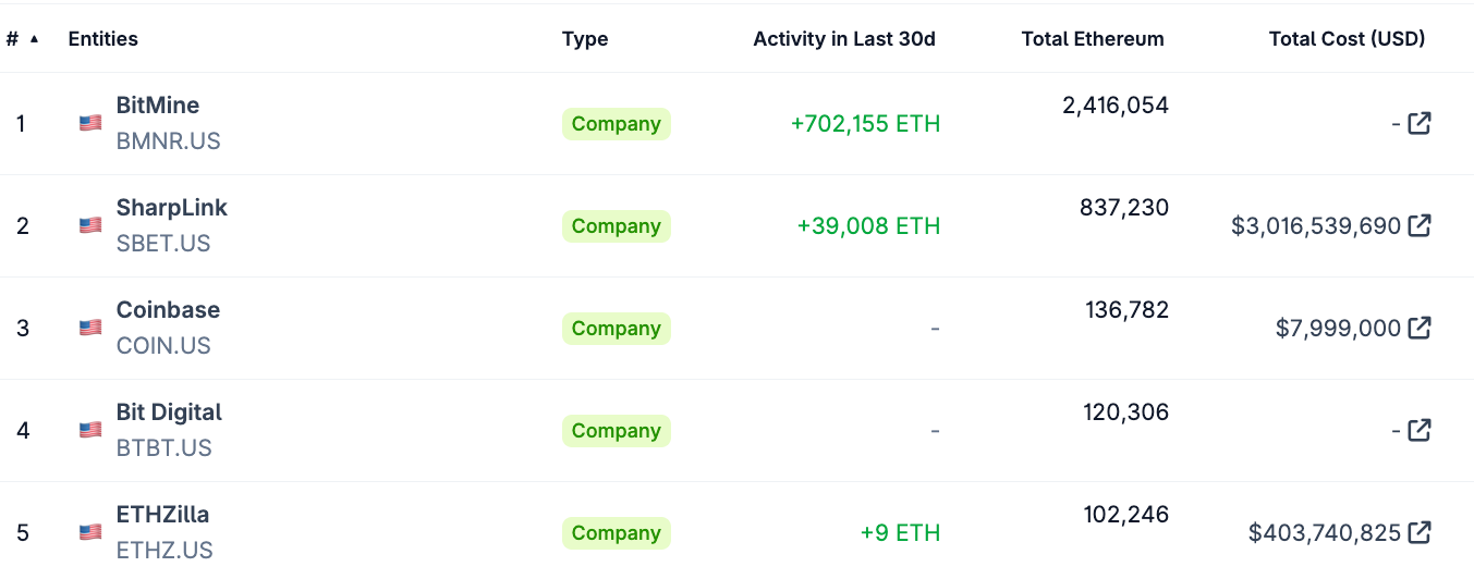 Компания повернулась к созданию резерва корпоративного эфира (ETH) в июне 2025 года, получив титул одного из крупнейших государственных владельцев в мире.