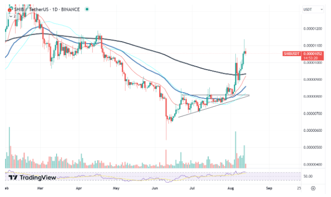Сиба-ину в настоящее время торгуется по цене 0,00001052 доллара. График: TradingView.com