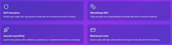Несмотря на добавление вариантов страхования, Memereum предоставляет все преимущества передовой платформы DEFI, включая карту DEX и криптовалюта.