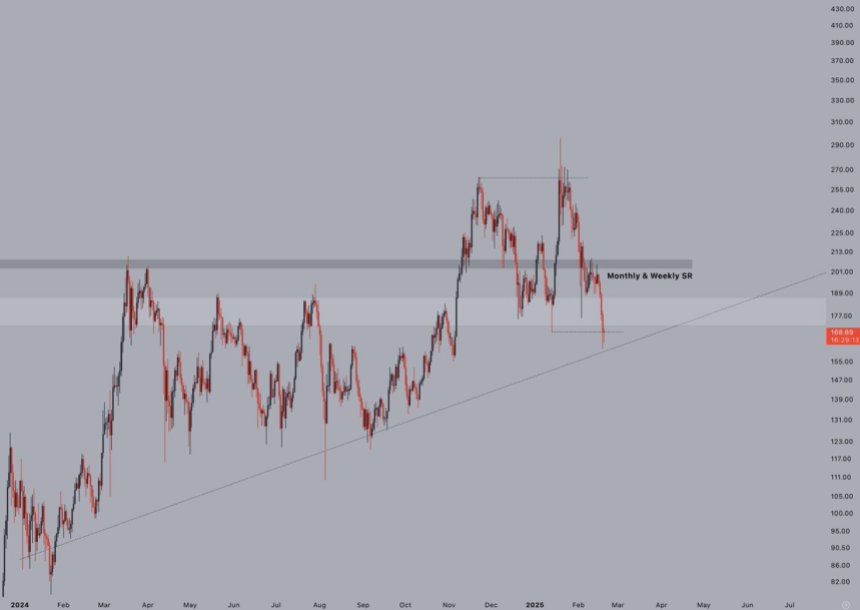 Солана столкнулась с огромным давлением продаж с момента достижения своего рекордно высокого уровня в конце января, и теперь ее цена изо всех сил пытается восстановиться на фоне более широкого спада на рынке альткойн. Отрицательные чувства продолжают доминировать как безумие мемов, которое когда -то заправлялось рост Соланы, превратился в ответственность, отталкивая ликвидность и уверенность инвесторов.