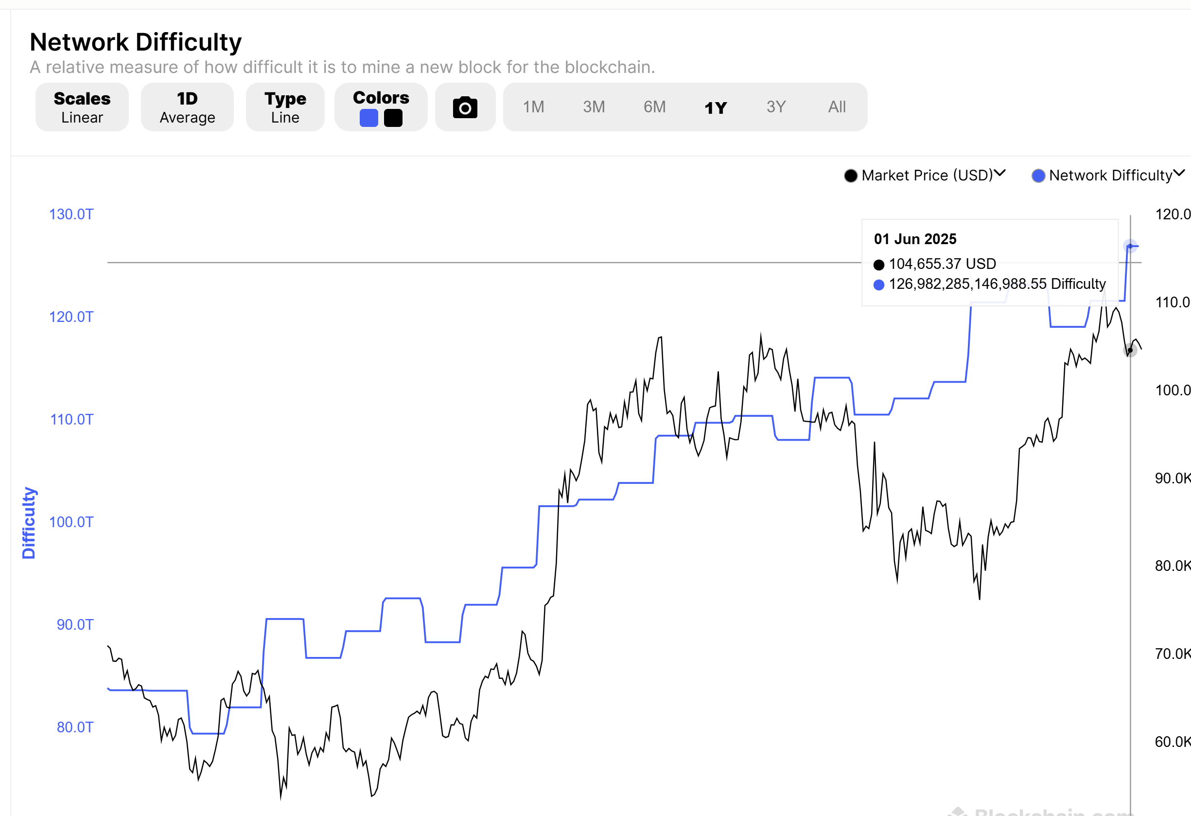 1 июня, согласно данным Blockchain.com, сложности добычи в биткоин достигли нового рекордно высокого уровня 126,98 трлн. Вскоре сложности отражает растущую конкуренцию среди шахтеров и повышение безопасности сети.