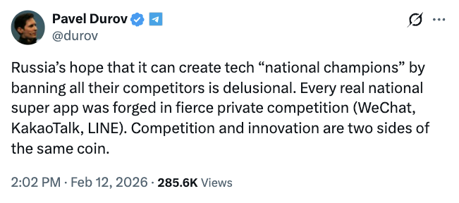Ранее Дуров заявлял, что давление направлено на то, чтобы подтолкнуть пользователей к новому поддерживаемому государством мессенджеру под названием MAX.