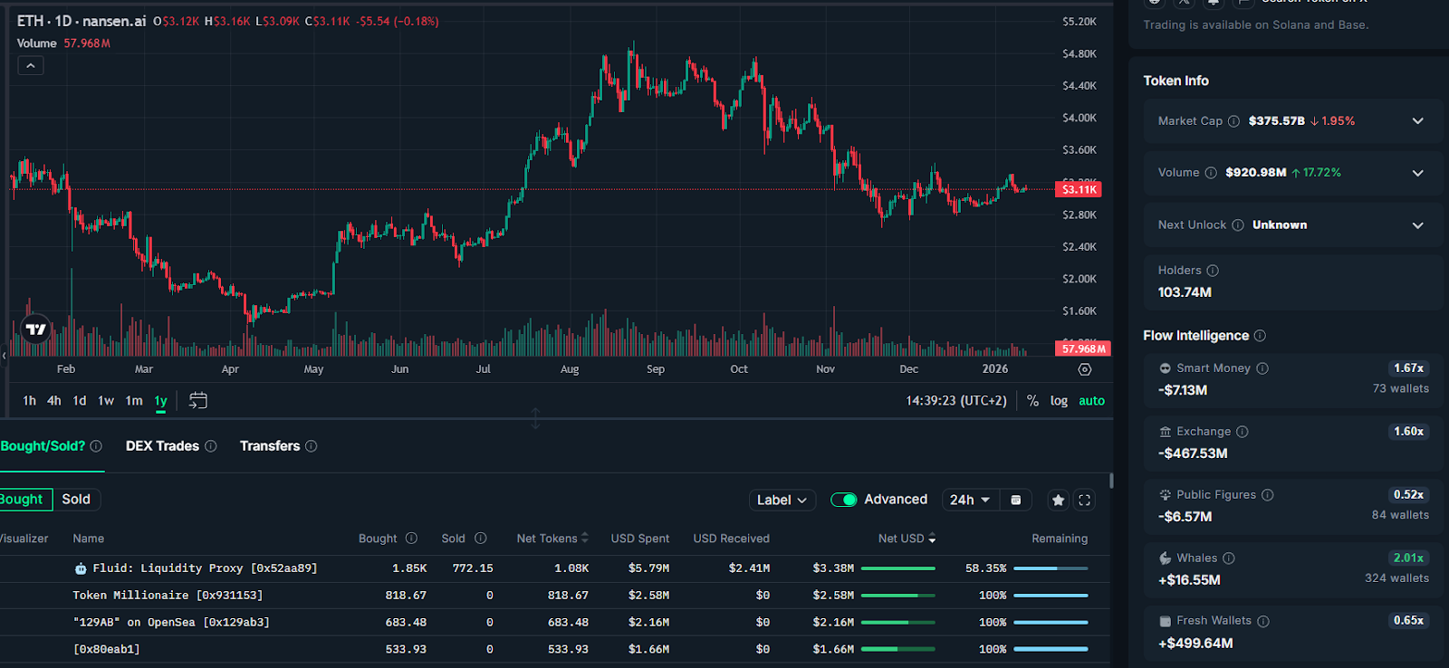 Согласно данным Нансена, эфир упал на 17% за последние три месяца и на 5,4% за последний год, достигнув на момент написания статьи 3105 долларов.