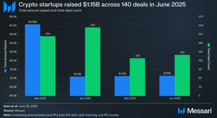 Июнь был сильным месяцем для секторов криптовалюты и Web3, причем связанные стартапы успешно собрали коллективные 1,15 млрд. Долл. США по 140 сделкам.