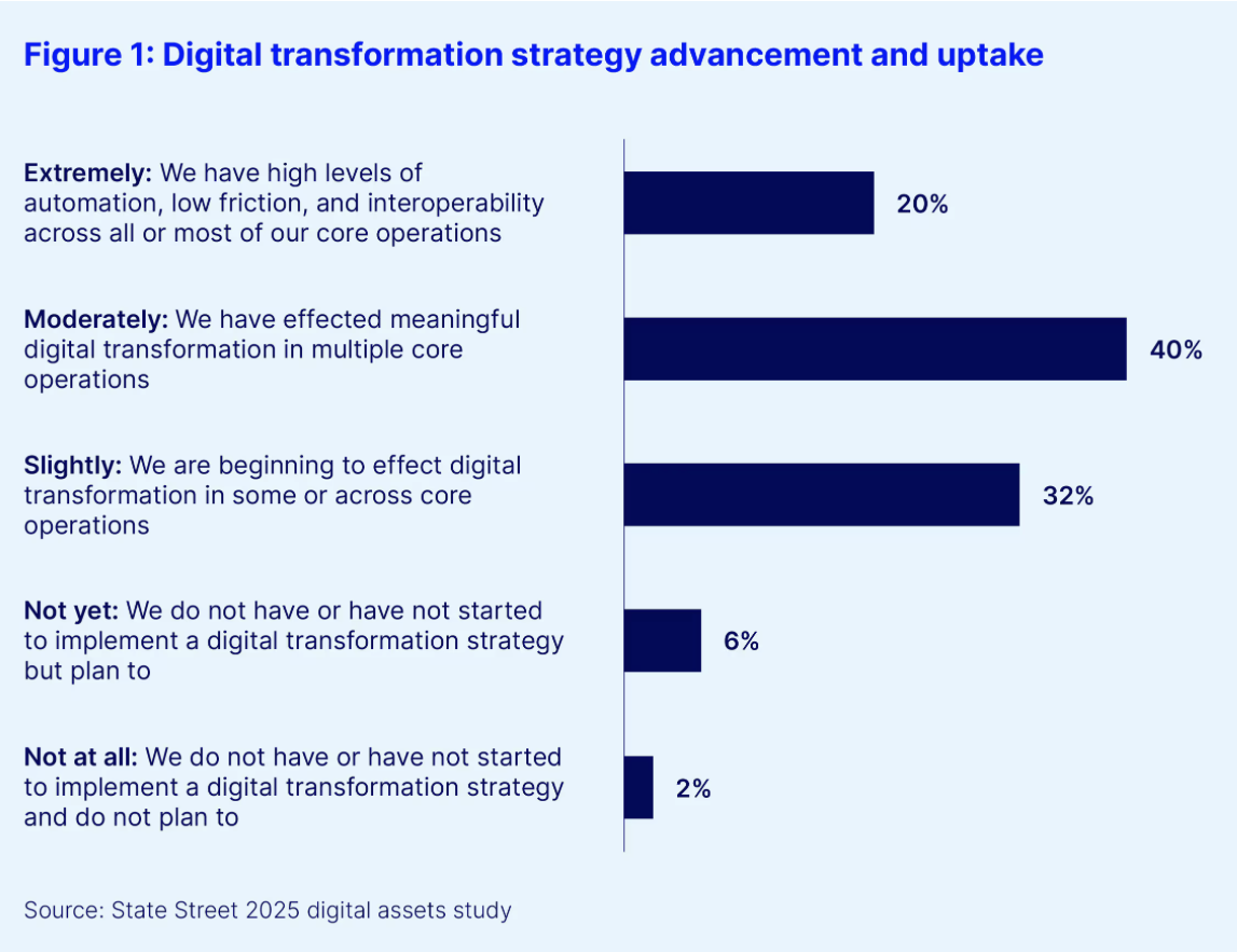 Согласно отчету, 29% респондентов заявили, что блокчейн является неотъемлемой частью их планов трансформации. Многие также расширяют использование блокчейна за пределы инвестиционных операций, применяя его для управления денежными потоками (61%), процессов бизнес-данных (60%) и юридических функций или функций обеспечения соответствия (31%).