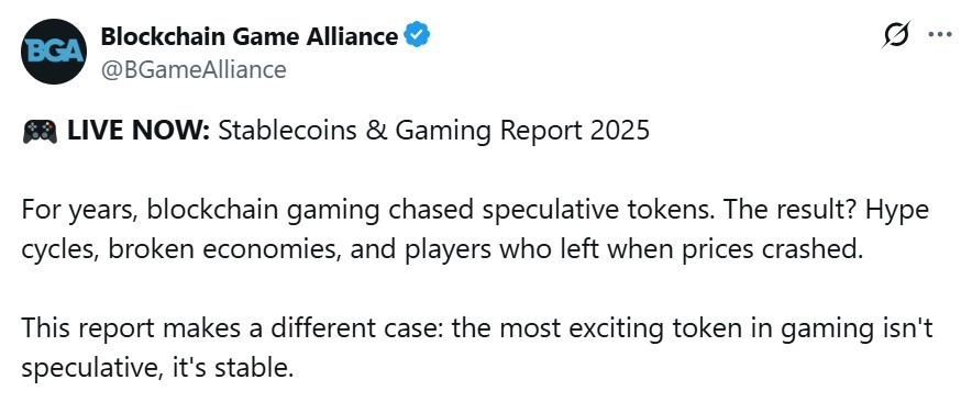 В отчете BGA переход к стейблкоинам описывается как ответ на недостатки моделей «играй ради заработка» (P2E), основанных на спекулятивных токенах.