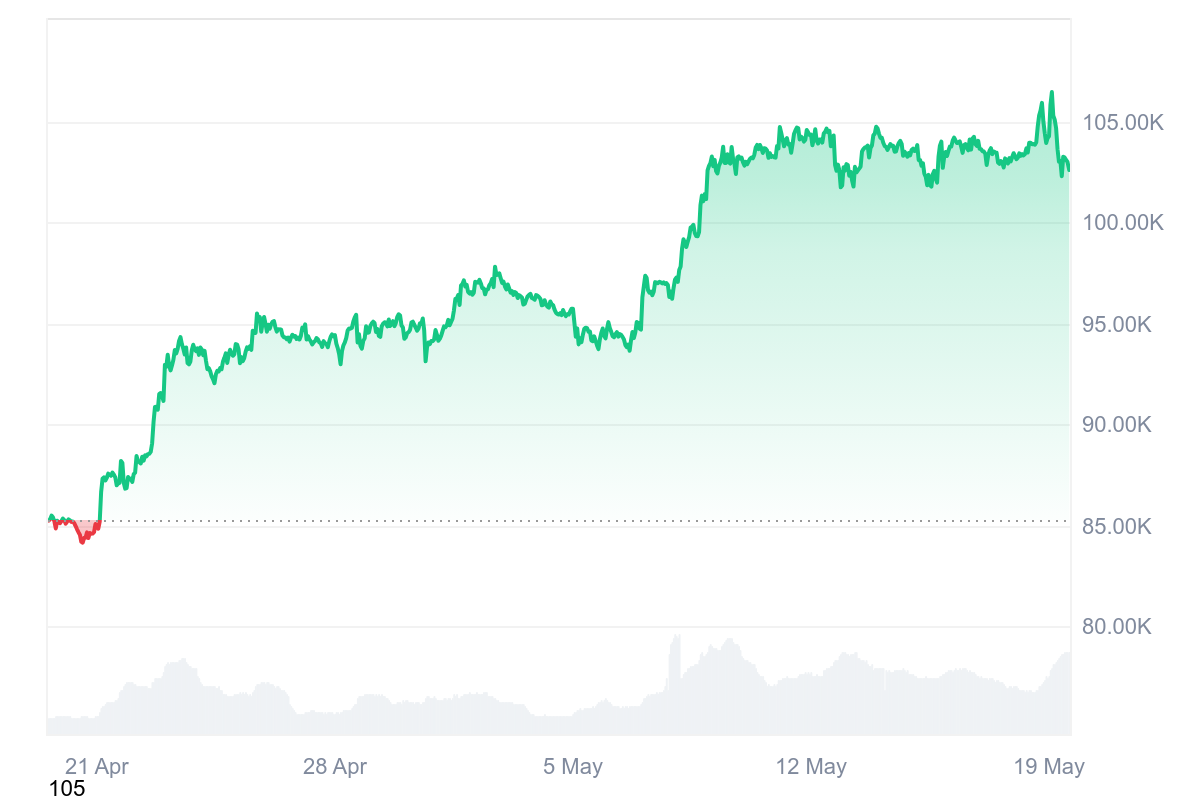 Согласно данным CoinmarketCap, биткоин торгуется на уровне около 102 615 долларов на момент написания, что на 20,3% за последний месяц.