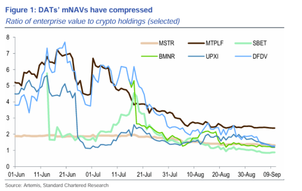 Согласно Standard Chartered, сделка может также подчеркнуть более широкую тенденцию: сжатые рыночные чистые значения активов (MNAV), что может повысить финансовые риски и усложнить расширение.
