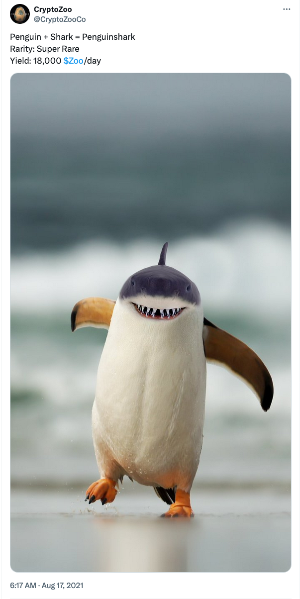 Cryptozoo, запущенный в 2021 году и показал NFTS вместе с токеном, но плановая игра на основе блокчейна так и не была запущена.