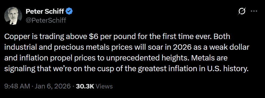 В 2025 году цены на золото выросли примерно на 65% на фоне возобновления усилий по дедолларизации, агрессивных покупок центральных банков и постоянных опасений инвесторов по поводу инфляции.